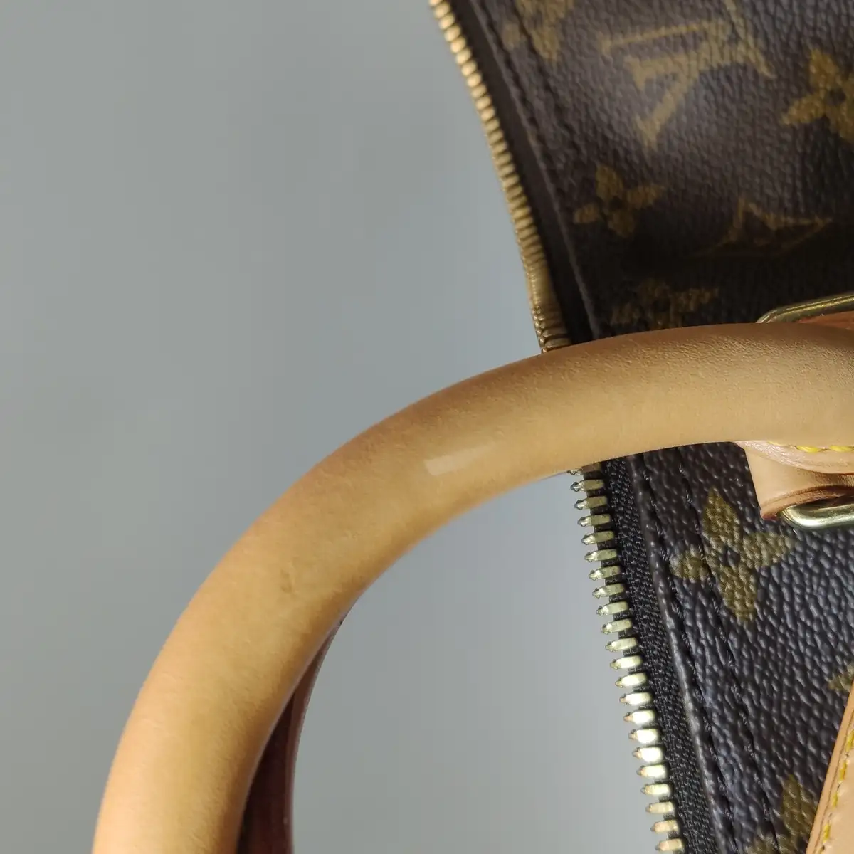 - Oxidação moderada no metal: As partes de metal (como zíperes ou fivelas) estão com um nível moderado de descoloração.