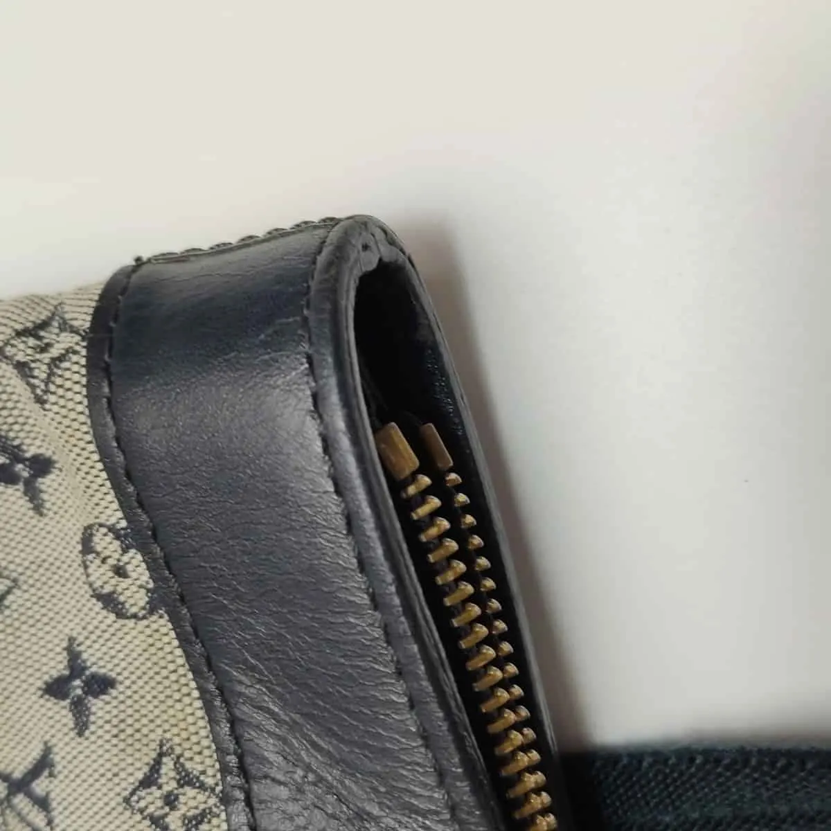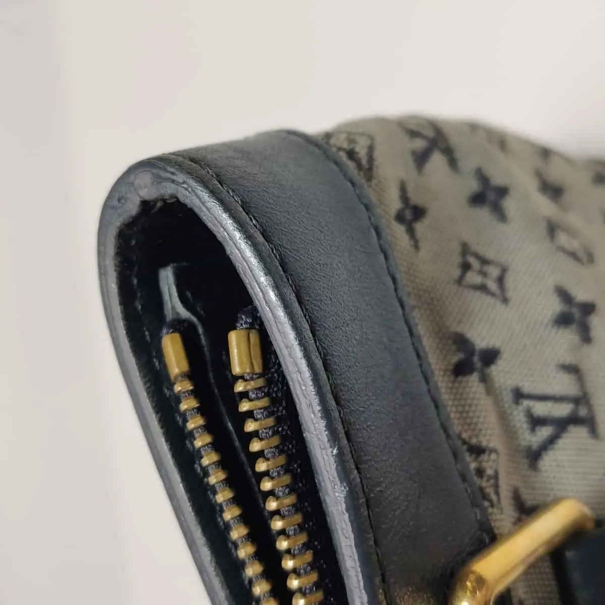 Borda da abertura da bolsa: Desgaste moderado no acabamento (bainha)