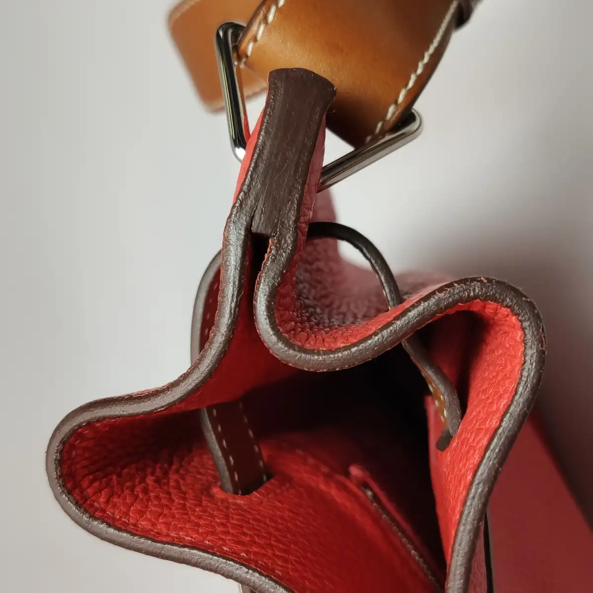 - Vincos moderados no corpo da bolsa