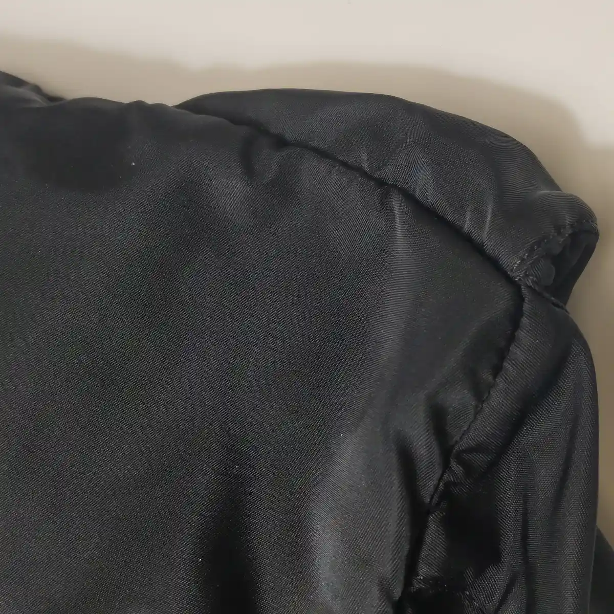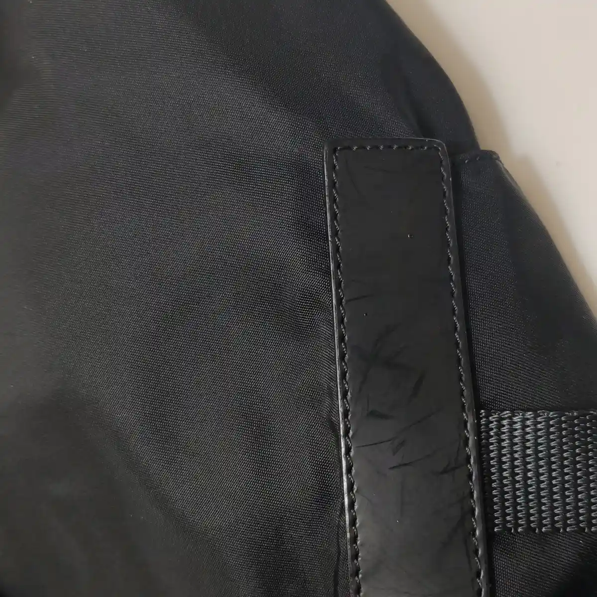 - A parte principal externa do item (o corpo da bolsa) apresenta manchas sutis ou sujeira leve espalhada por sua superfície.